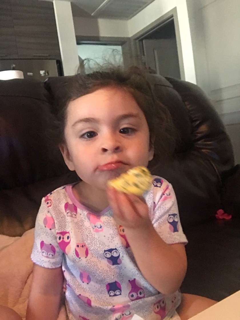 (Don’t you love the fancy pink children’s plate I used?! It’s all we have that isn’t made of paper…)